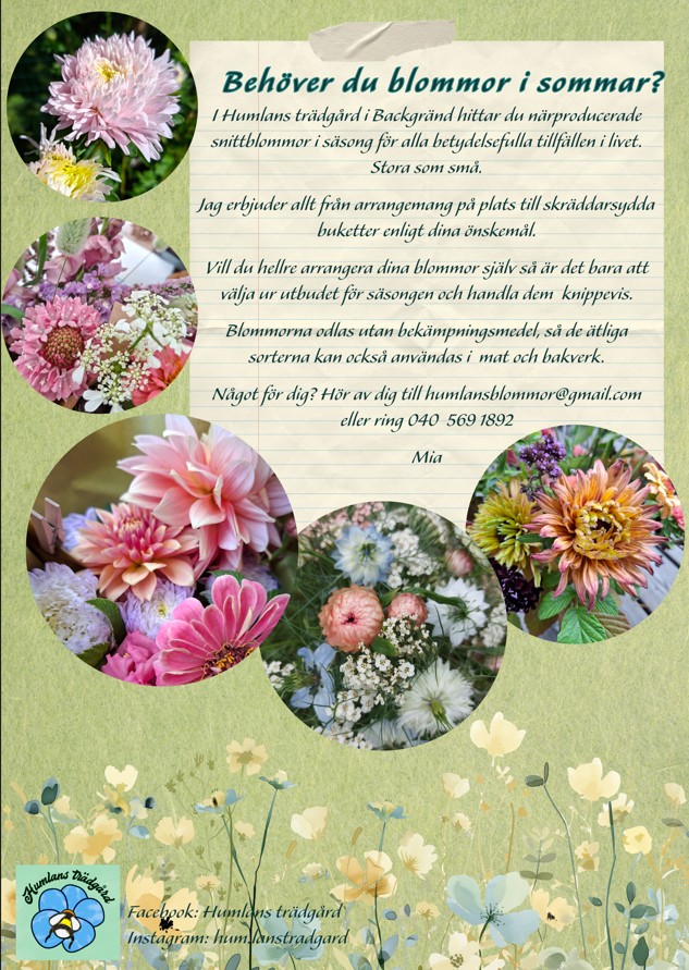 Humlans Trädgård i Backgränd odlar snittblommor lokalt och hjälper gärna med festarrangemangen: